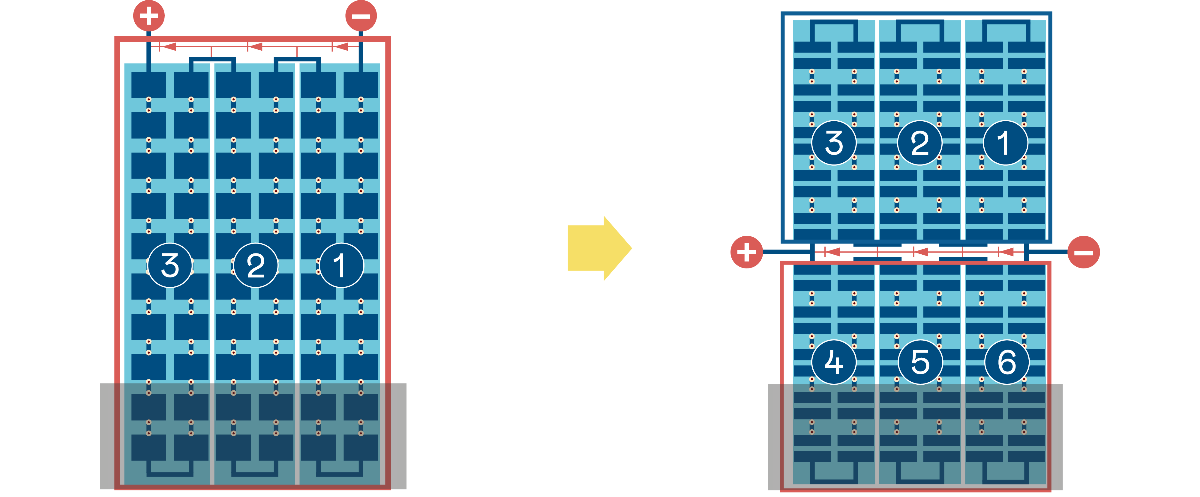 • The multi-busbar structure effectively decreases the impact of external force on batteries and restricts the scope of micro-cracks, preventing the expansion of damage from the current distribution.