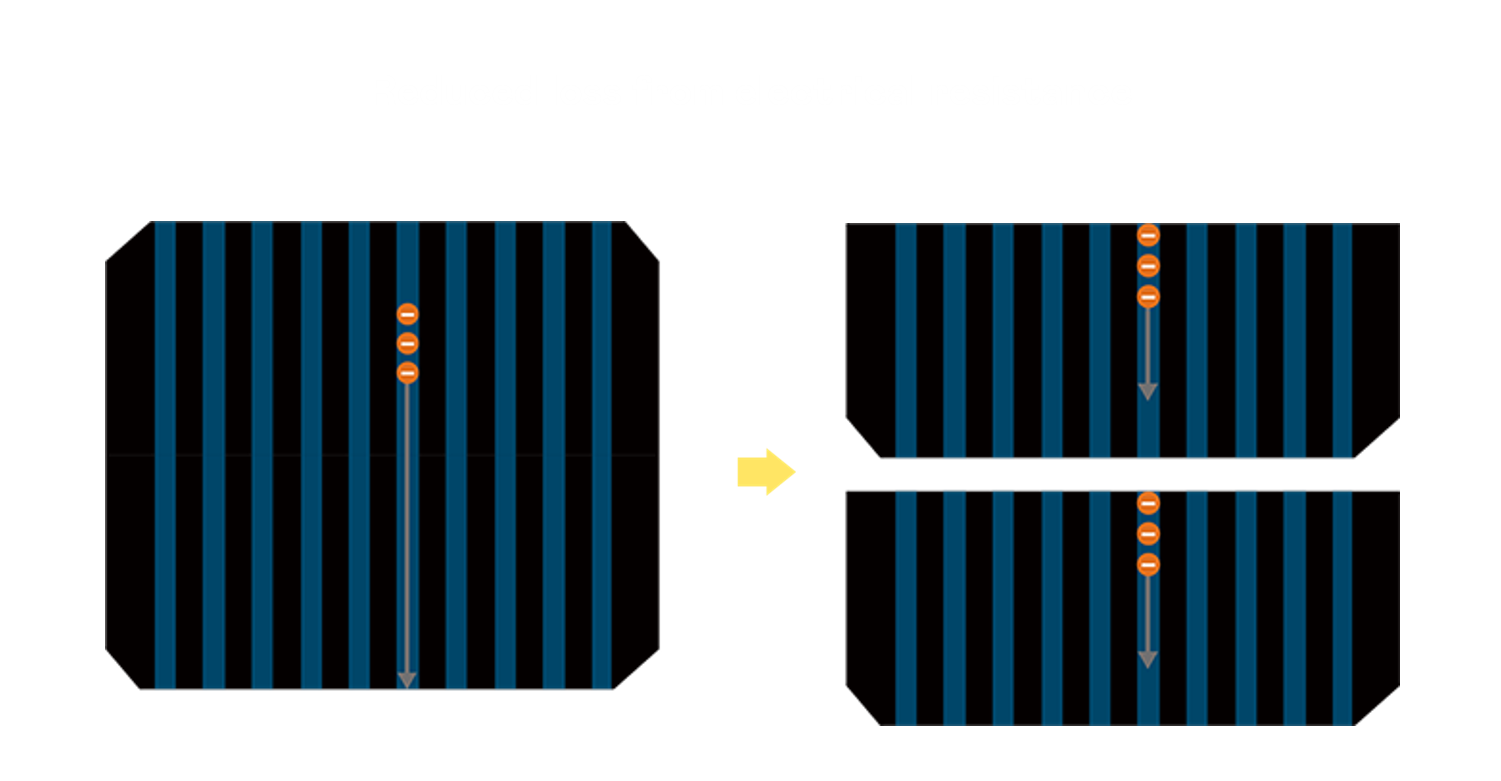 • 結合半切電池,降低遮陰影響、提升模組抗隱裂能力、并減少電阻損耗,進一步提升模組發電效能。